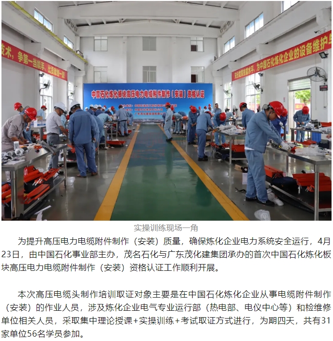 首次中國石化煉化板塊高壓電力電纜附件制作(安裝)資格認證在茂名順利舉行