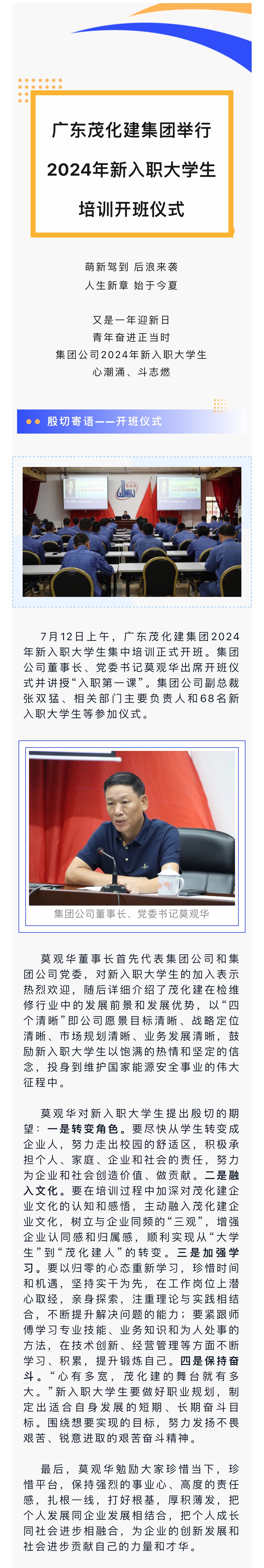 廣東茂化建集團(tuán)舉行2024年新入職大學(xué)生培訓(xùn)開(kāi)班儀式