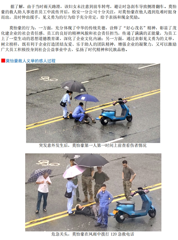 危難時刻伸援手:員工莫怡豪雨中勇救突發(fā)意外路人獲贊譽