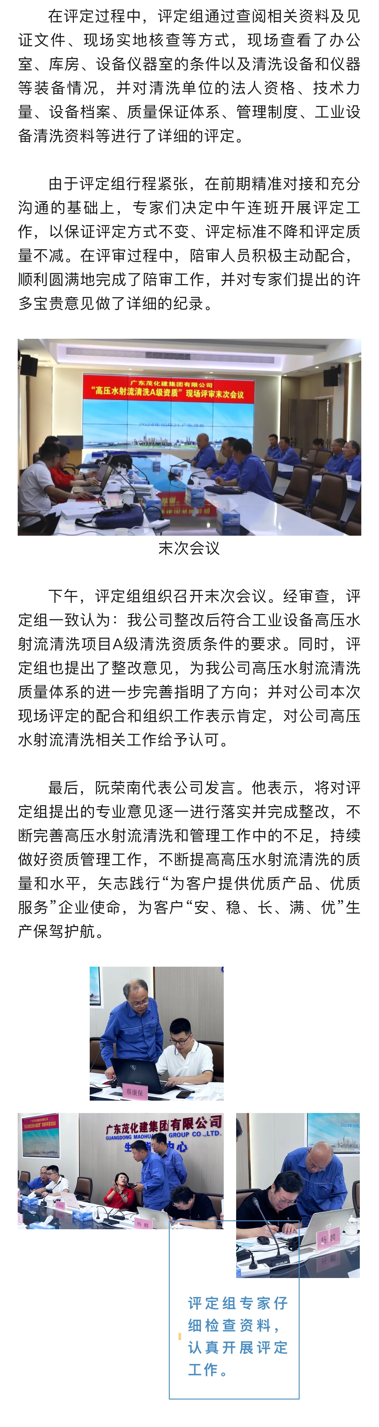 集團(tuán)公司順利完成工業(yè)設(shè)備高壓水射流清洗A級(jí)清洗資質(zhì)現(xiàn)場評(píng)定