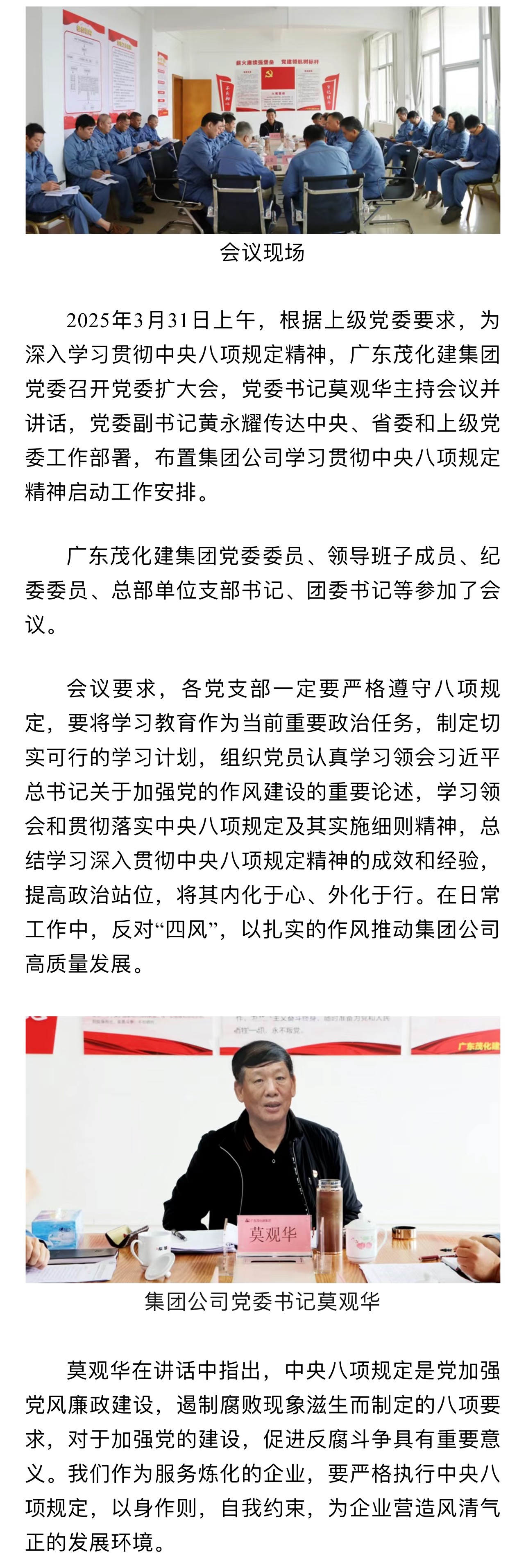 廣東茂化建集團(tuán)黨委召開貫徹中央八項(xiàng)規(guī)定精神學(xué)習(xí)教育部署啟動(dòng)會(huì)