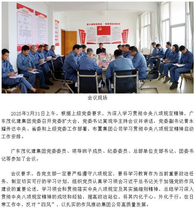 廣東茂化建集團(tuán)黨委召開貫徹中央八項(xiàng)規(guī)定精神學(xué)習(xí)教育部署啟動會