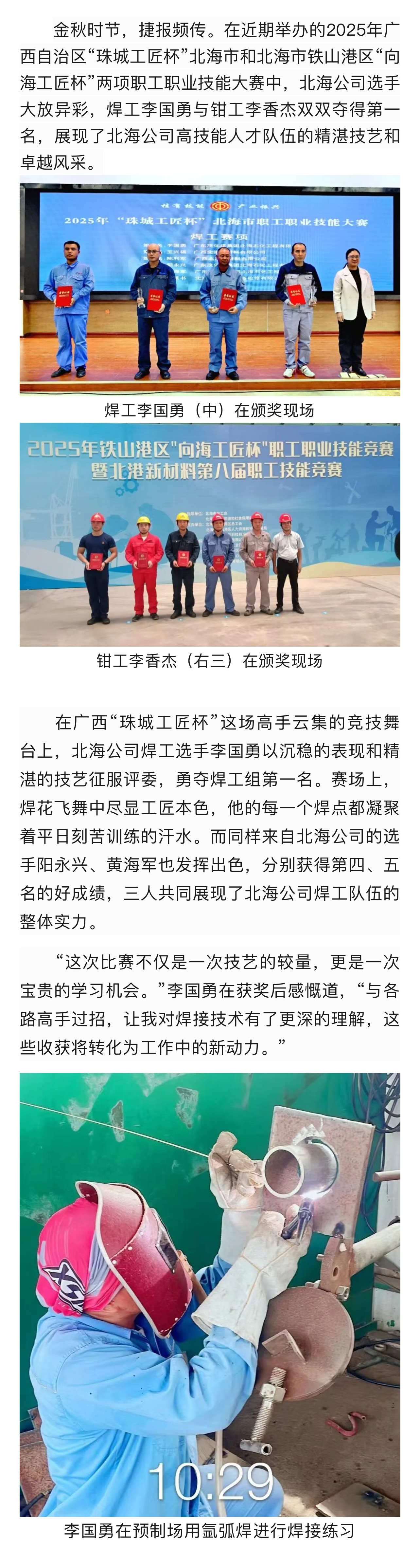 北海公司技能賽場捷報(bào)頻傳,勇奪焊工、鉗工雙項(xiàng)桂冠