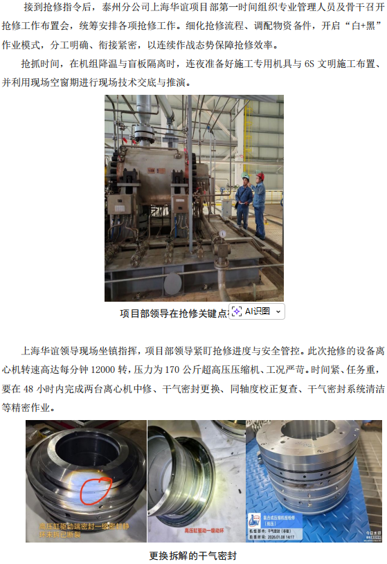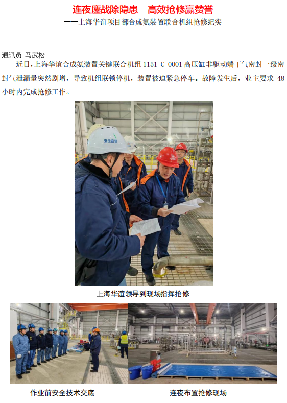 上海華誼項目部合成氨裝置聯(lián)合機組搶修紀實
